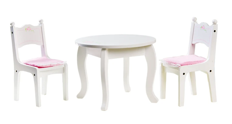 Dolls Furniture Table Chairs Wood Toy Pink White Flowers Fits