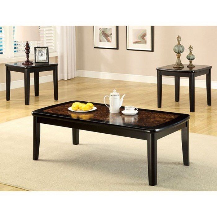 Black Faux Marble 3 Piece Occasional Table Set Coaster Furniture