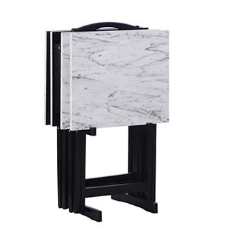 Linon Home Decor 5 Piece Amiee Faux Marble Tv Tray Set Tv Tray