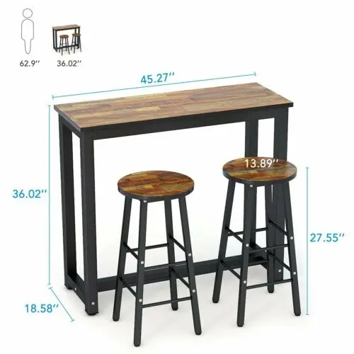 Pub Table Set 3 Piece Bar Stools Dining Kitchen Furniture Counter
