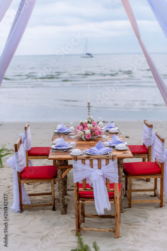 Romantic Dinning Table On The Beach Table Setting At A Luxury