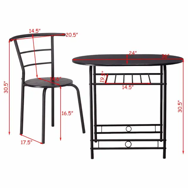 3 Pcs Bistro Dining Set Table And 2 Chairs Kitchen Furniture Pub