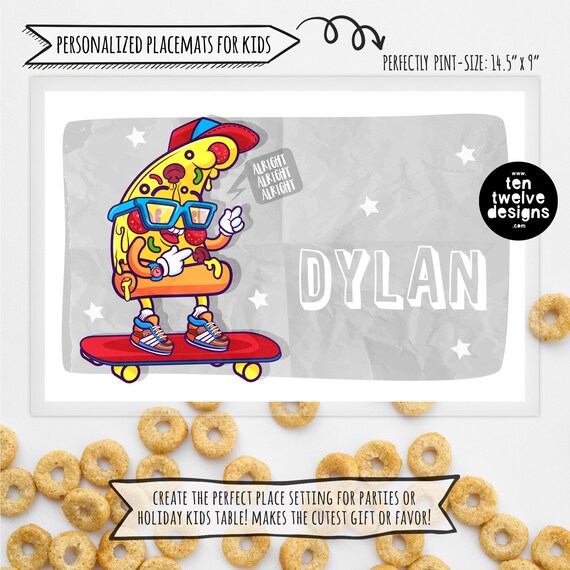 Skateboarding Pizza Personalized Placemat For Kids Childrens Etsy