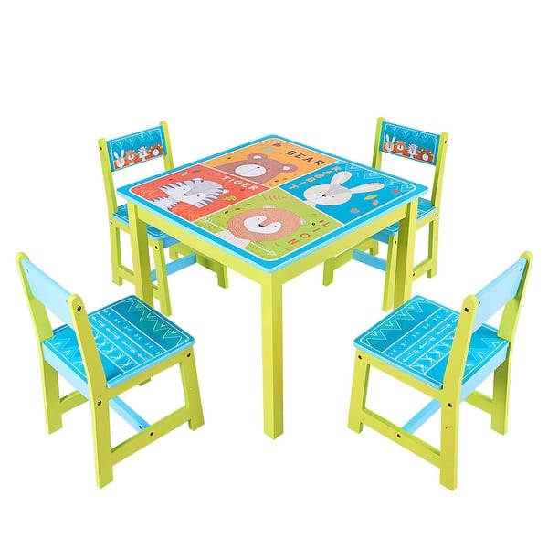 5 Piece Kids Play Table Chair Set Wood Activity Study Table W 4