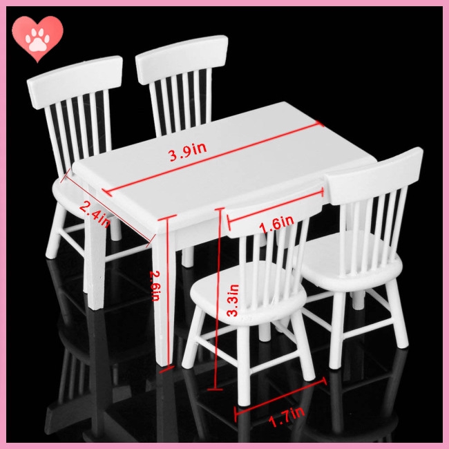 5pcs White Dining Table Chair Model Set 1 12 Dollhouse Miniature