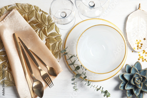 Elegant Table Setting On Light Background Top View Buy This
