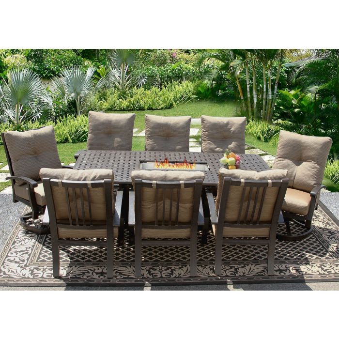 Propane Fire Pit Dining Table Set 9 Piece Outoor Cast Aluminum