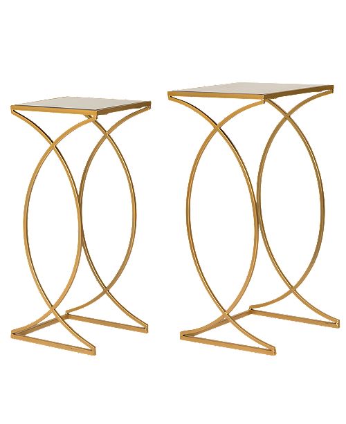 2pc Amina Finished Metal And Mirrored Glass Stackable Accent Table