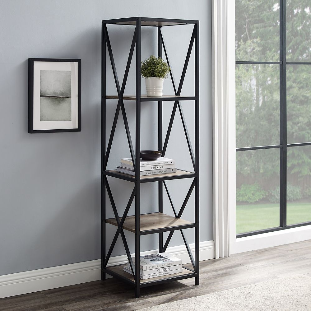 Welwick Designs 61 Inch Metal Wood Bookcase Grey Wash The Home