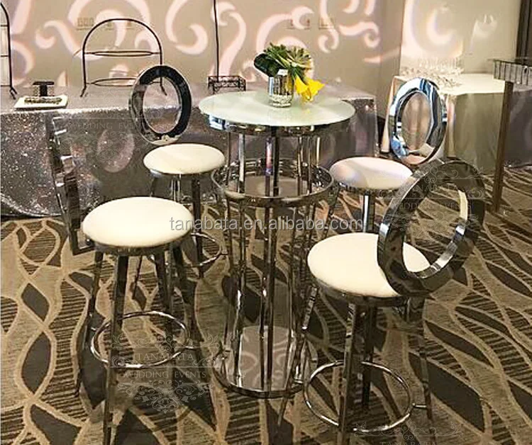Stand Up Stainless Steel Base Glass Top Cocktail High Bar Table