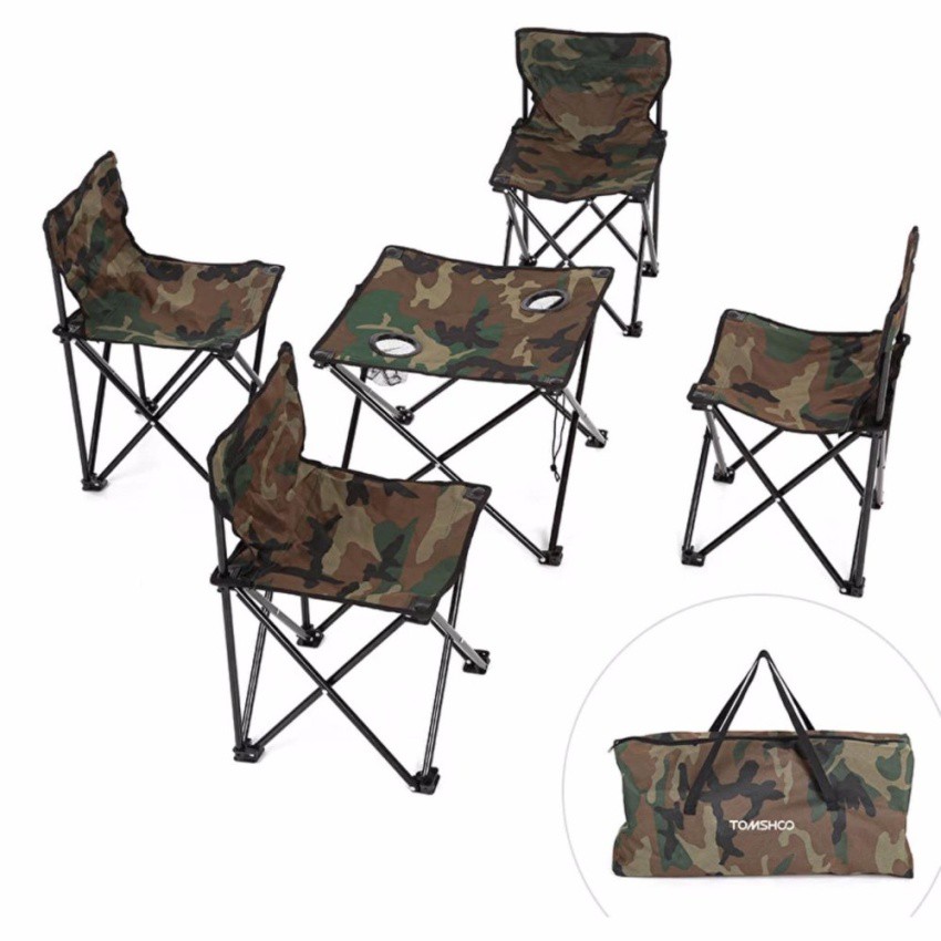 Outdoor Folding Camping Chair And Table Set 5pcs 1pc Table 4pcs