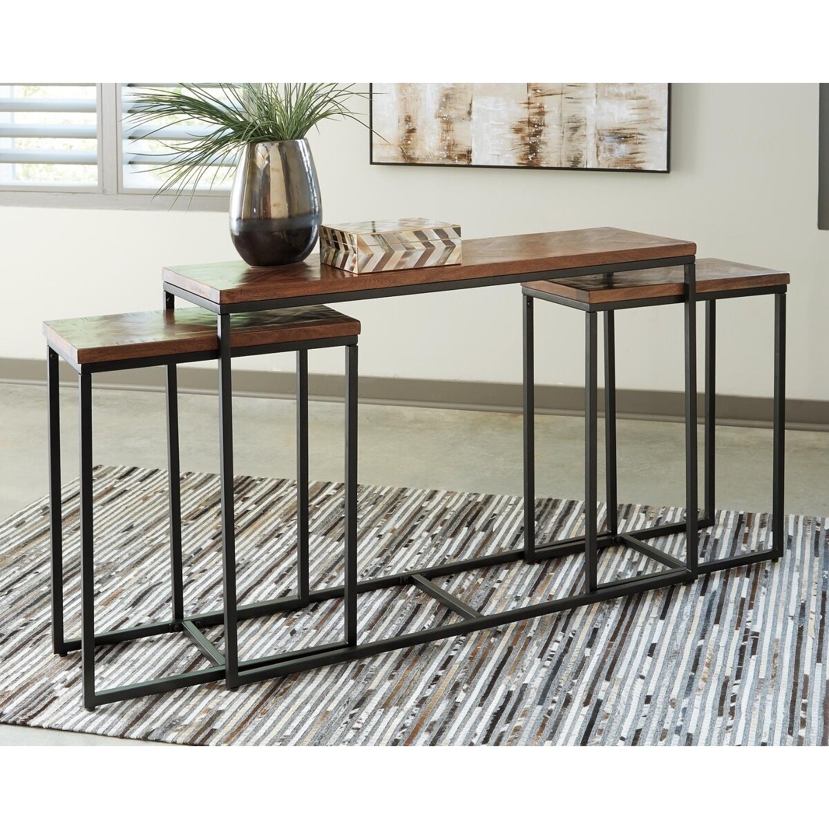 Jadenley Console Table Set 3 Piece Set Brown Black Top