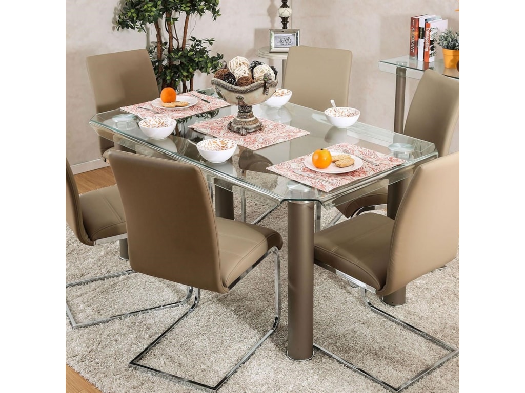 Contemporary Glass Dining Set With 4 Faux Leather Chairs Tmt