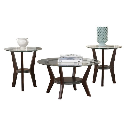 Clarence 3 Piece Occasional Table Set In Dark Brown Finish By