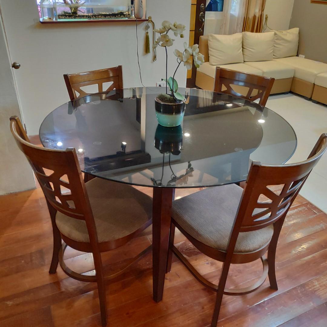 Glass And Wood Dining Table Set With 6 Chairs On Carousell