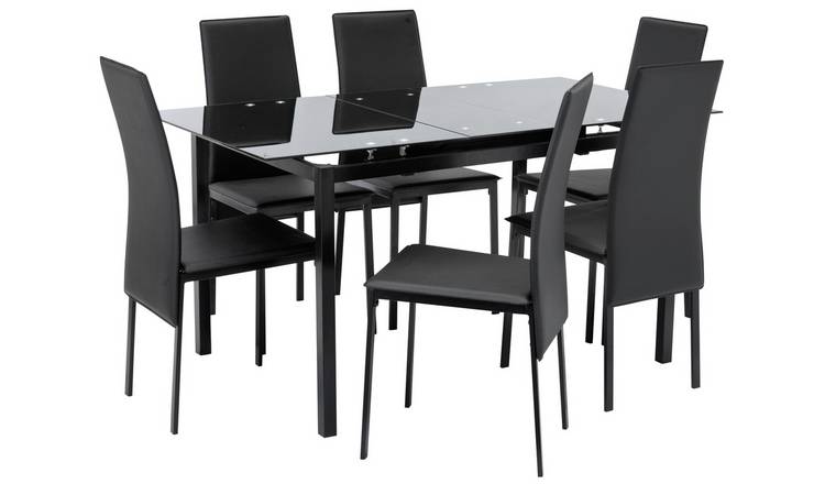 Buy Argos Home Lido Glass Extending Table 6 Black Chairs