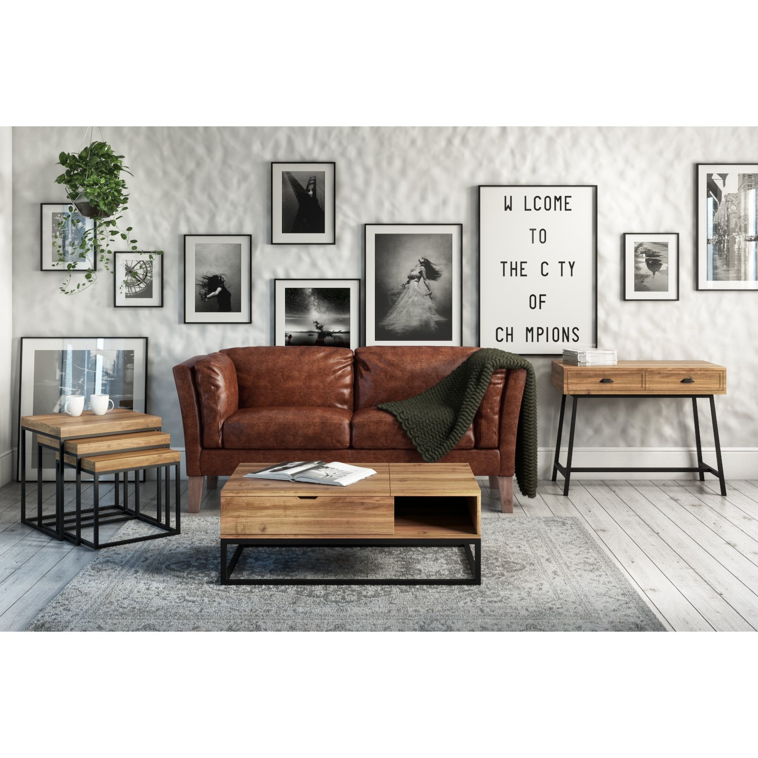 Solid Wood Flip Top Coffee Table With Industrial Black Base Suri