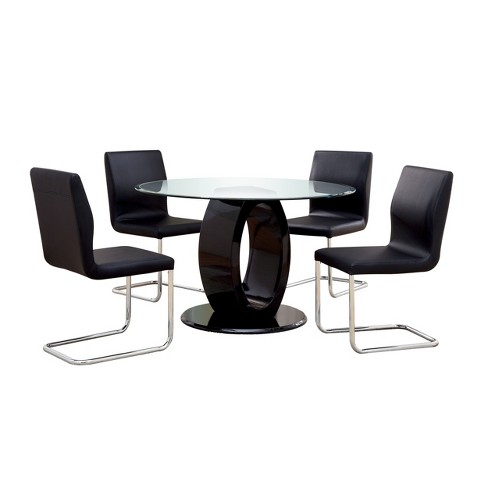 Sweet Home Furniture By Niposul Mauna Black Glass Top Round Dining