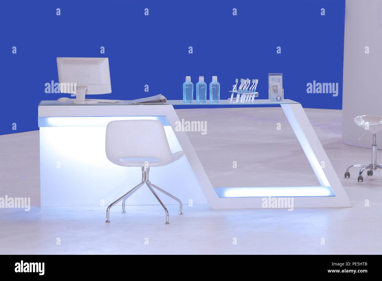 A Modern Table Used For A Infamation Counter In Dental Caer Booth