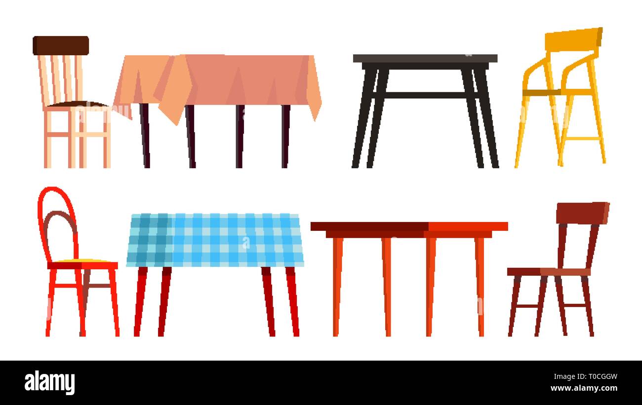 Home Table Chair Icon Set Vector Wooden Dinner Furniture