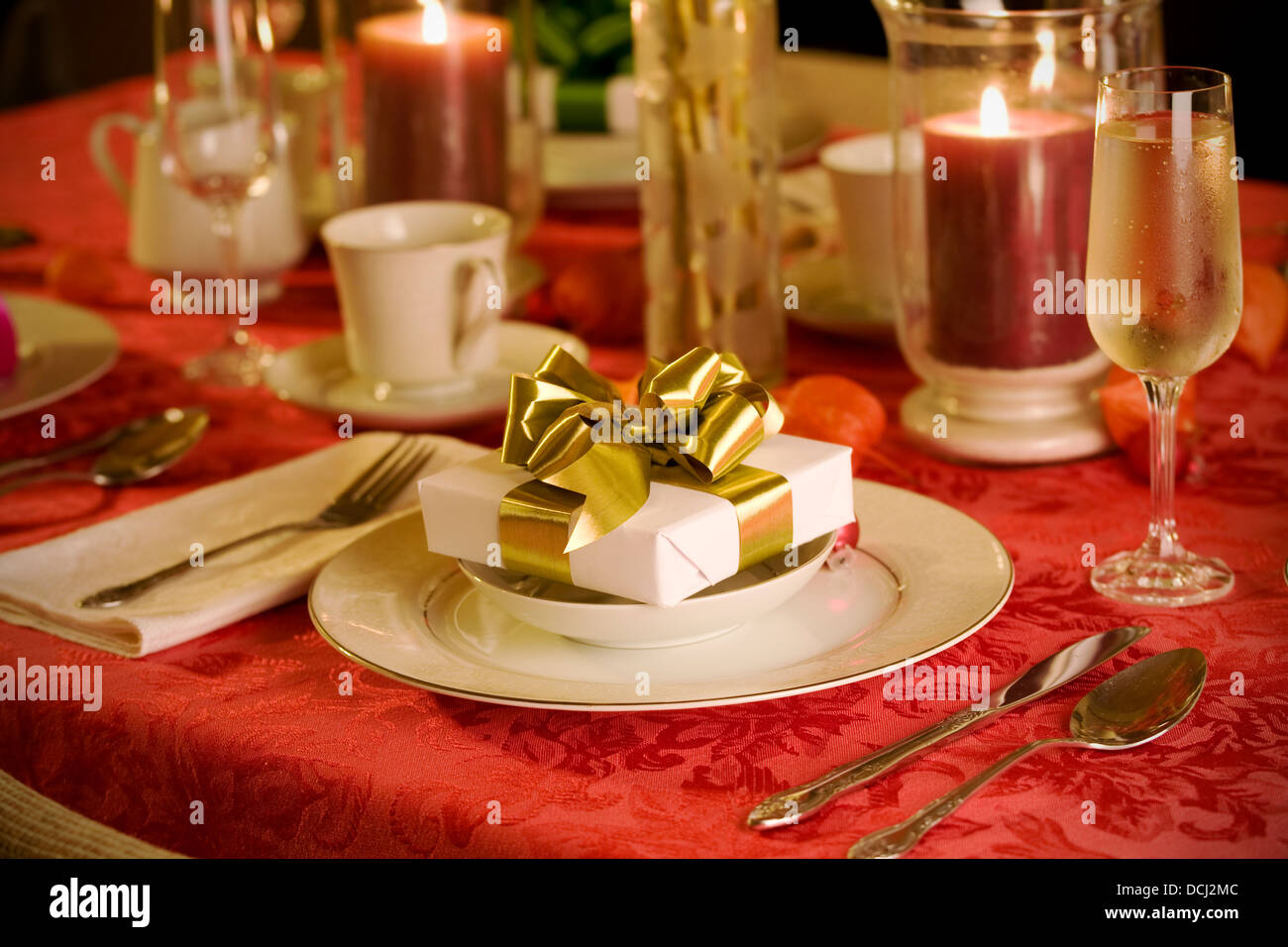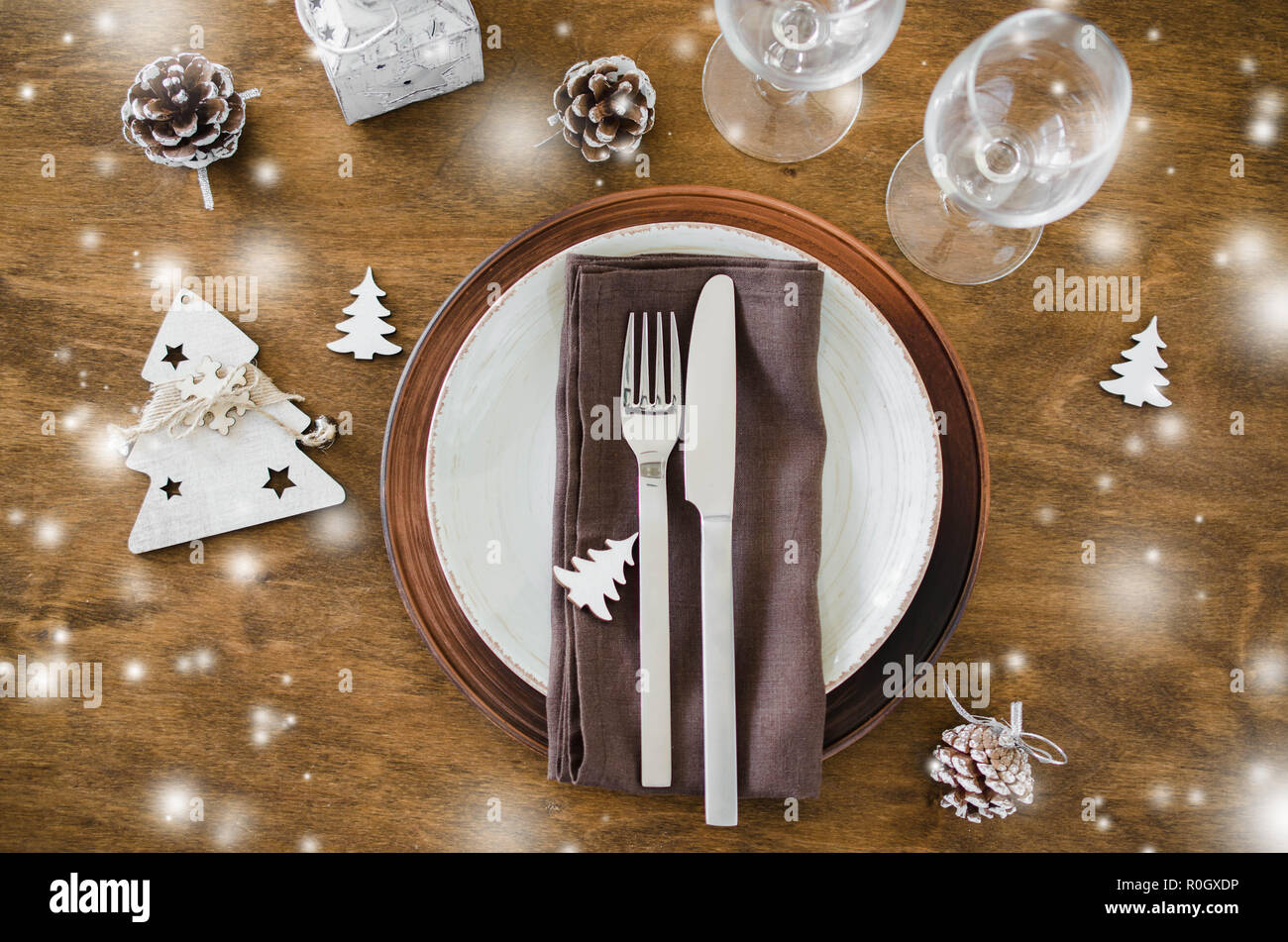 Christmas Table Setting With Holiday Decorations Stock Photo