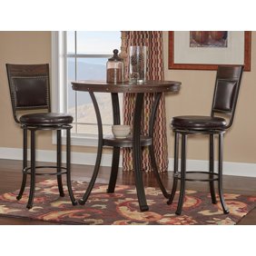 3 Pc Square Pub Table Set In Dark Brown Finish Walmart Com
