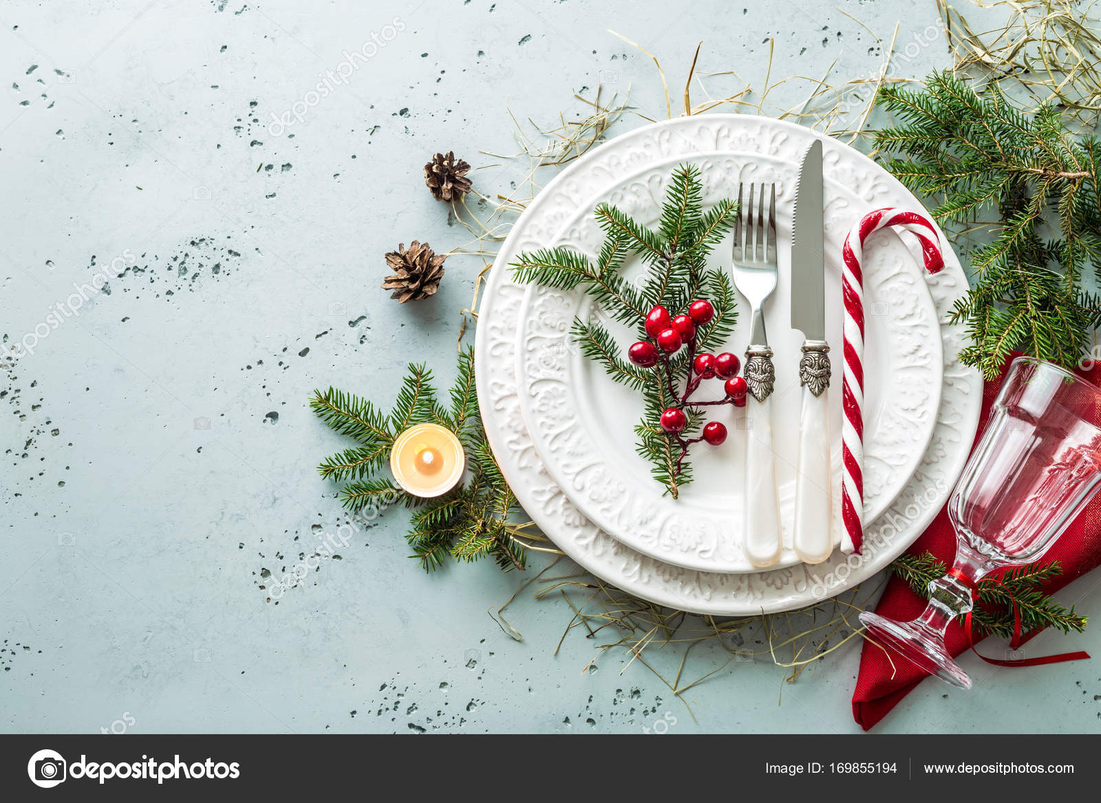 Elegant Christmas Table Setting Design Top View Flat Lay
