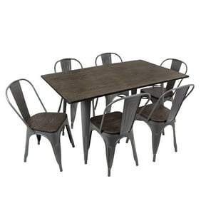 7 Piece Farmhouse Dining Set Mahogany And Black Walmart Com