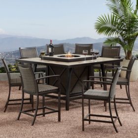 Traditions 7 Piece High Dining Set With 30 000 Btu Fire Pit Table