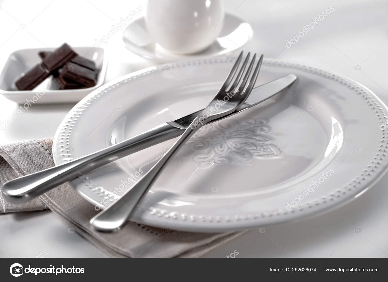 Classic Table Setting Cutlery Knife Fork Porcelain Plate Linen
