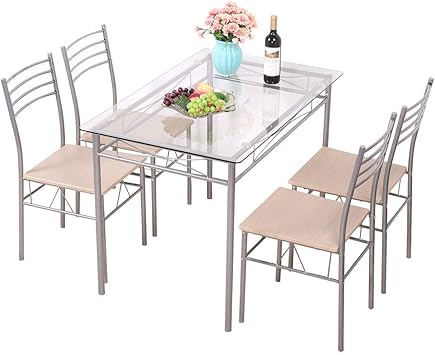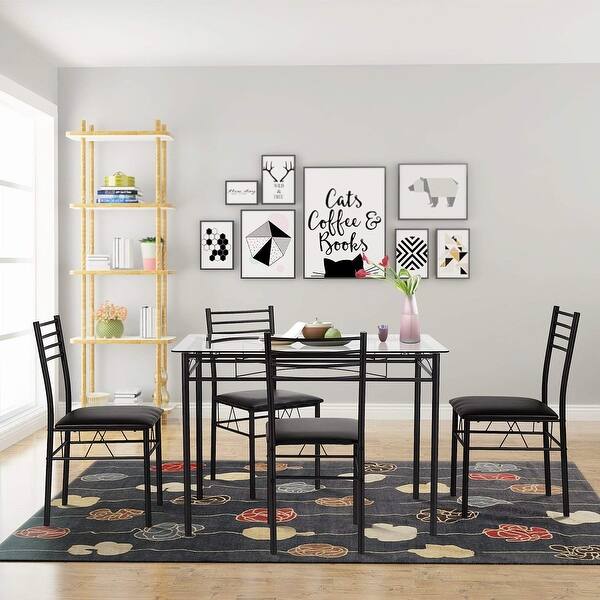 Shop Vecelo Glass Dining Table Sets With 4 Chairs Kitchen Table