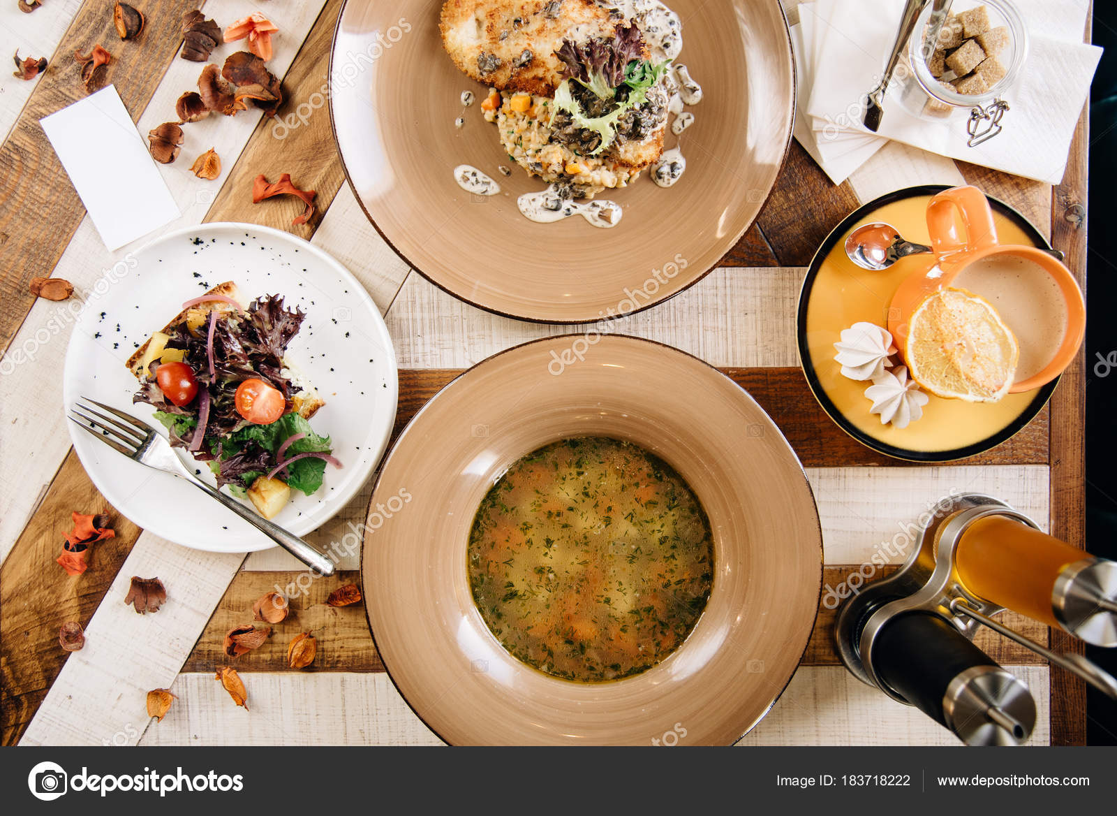 3 Course Lunch Chef S Specialty Soup Presented In Restaurant On