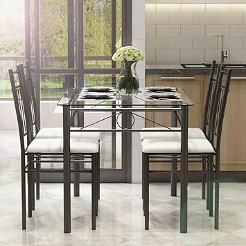 Amazon Com Giantex 3 Pcs Dining Table Set With 2 Upholstered