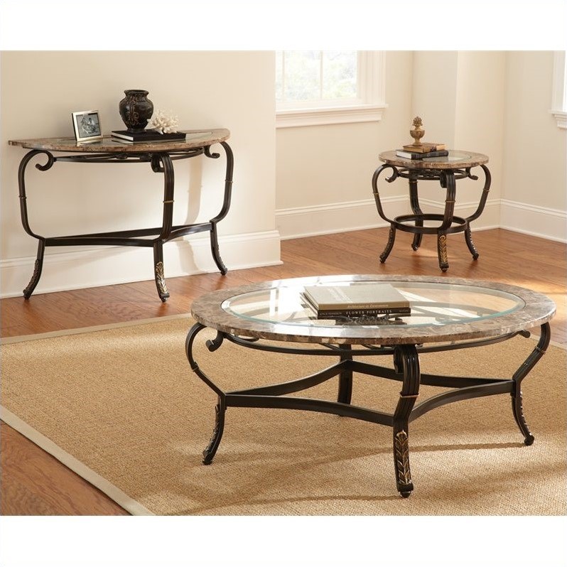 3 Piece Faden Metal Occasional With Faux Marble Cocktail 2 End