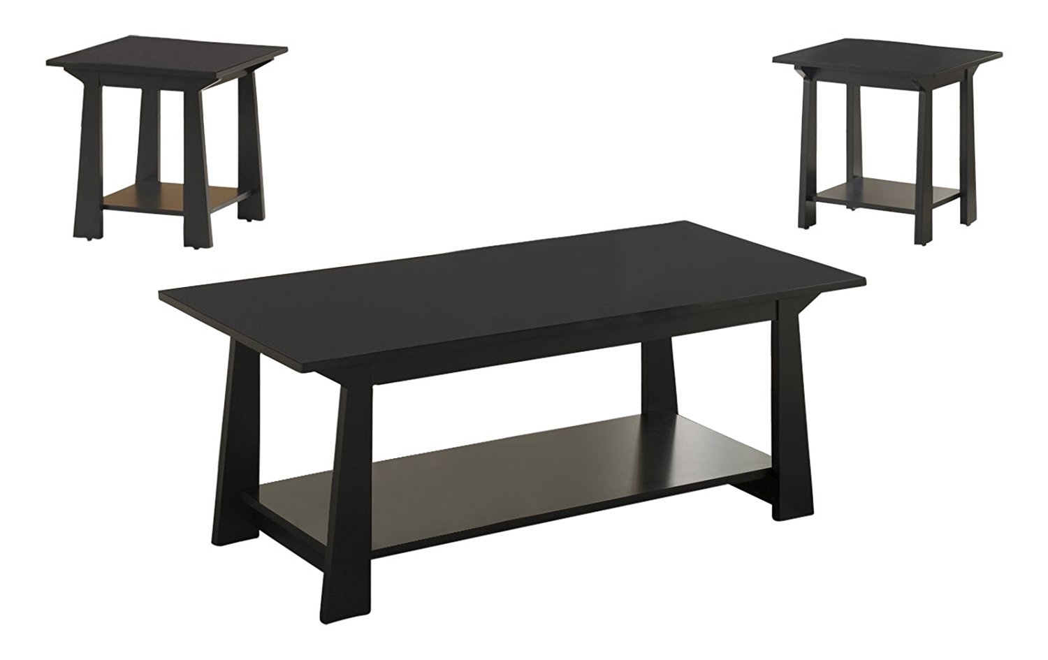 Sally 3 Piece Coffee Table Set Black Wood With Storage Shelves
