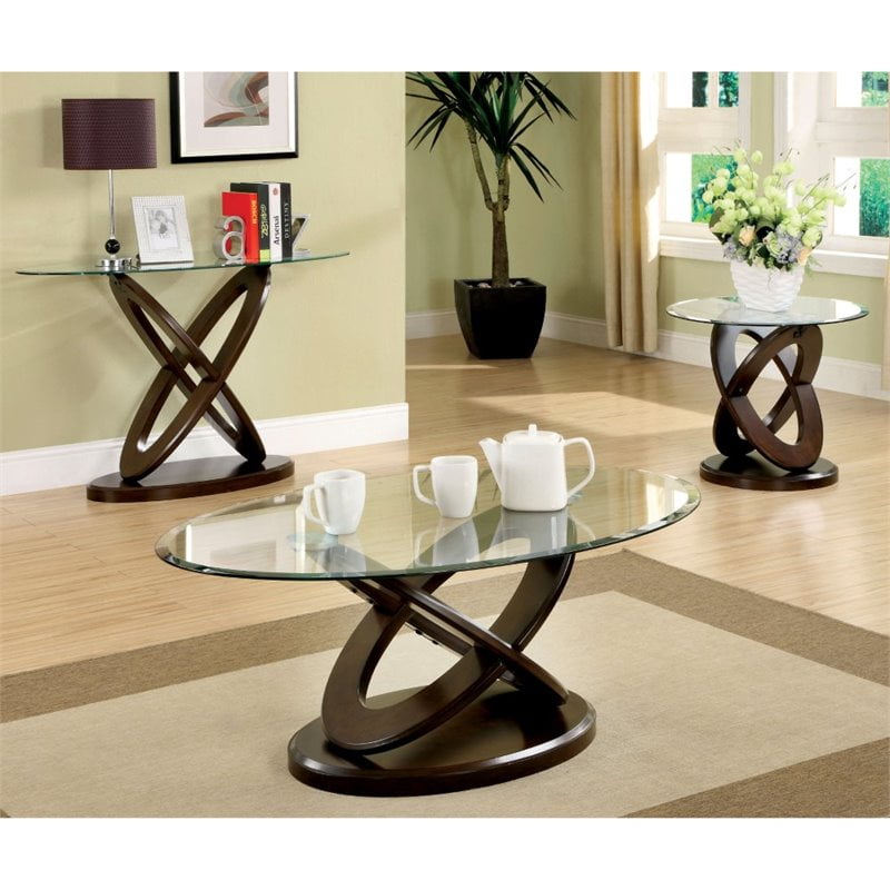 Coaster Furniture 3 Piece Glass Top Coffee Table Set Walmart Com