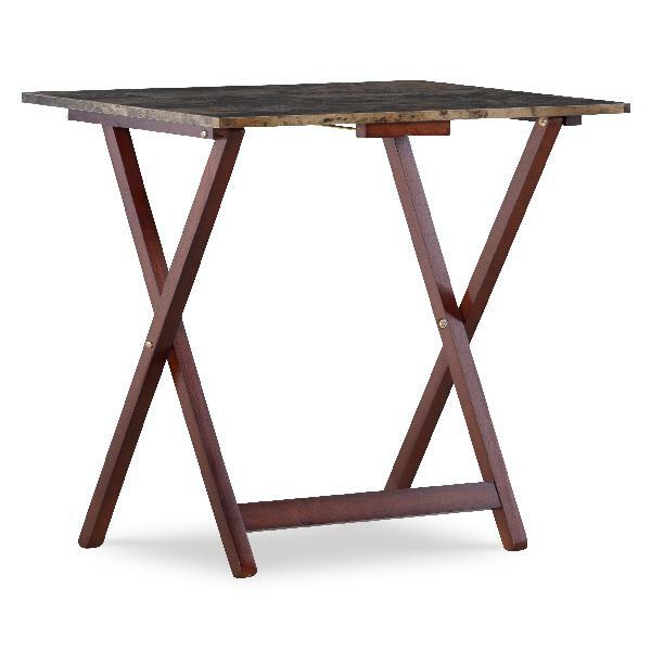 Linon 5 Piece Faux Marble Folding Tv Snack Tray Table Set Brown