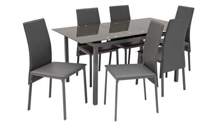 Buy Argos Home Lido Glass Extending Dining Table 6 Grey Chairs