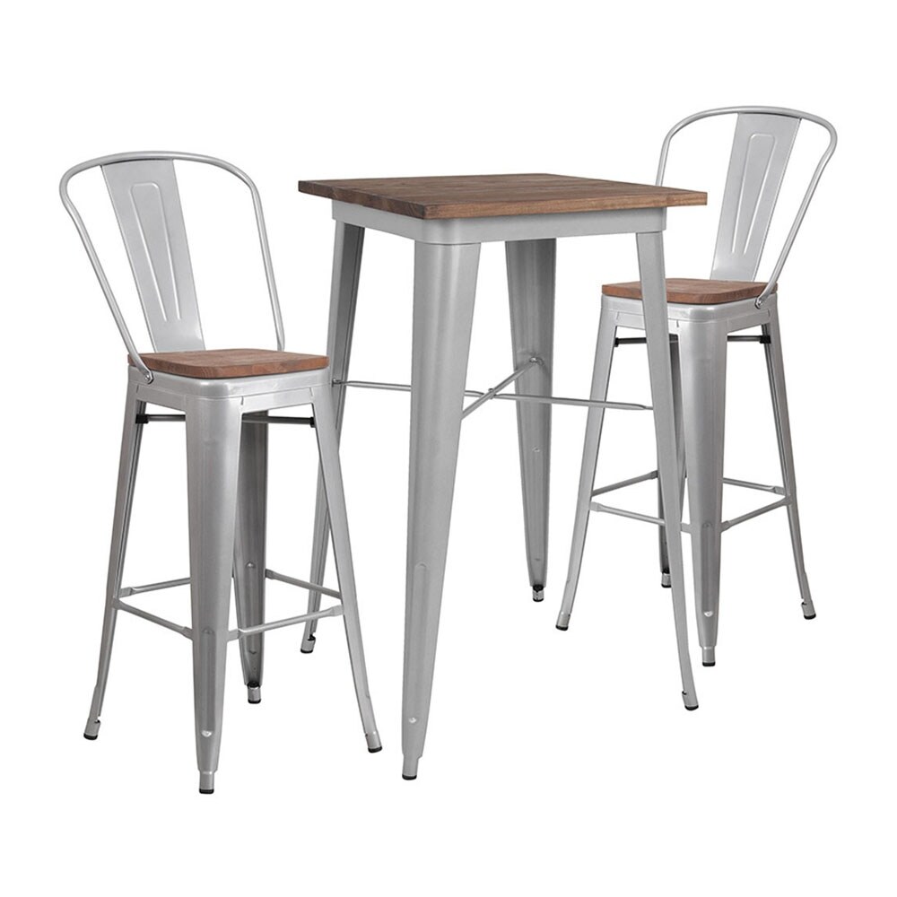 Shop Offex 23 5 Square Silver Metal Bar Table Set With Wood Top