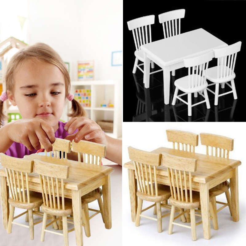 5pcs 1 12 Wooden Kitchen Dining Table Chair Set Barbie Dollhouse