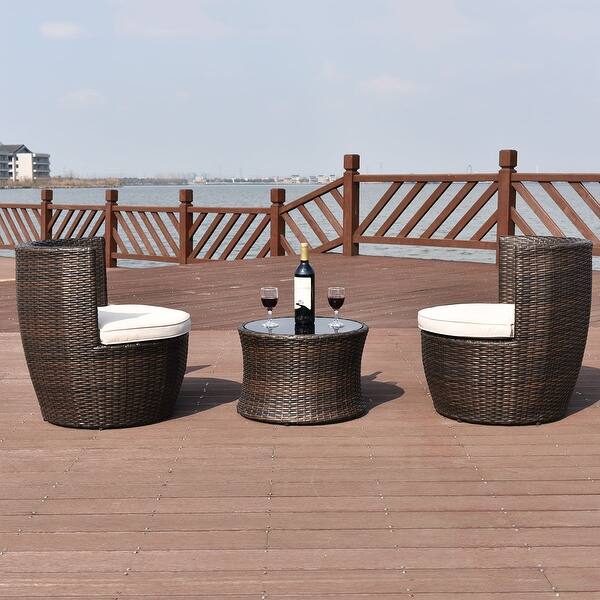 3 Piece Patio Furniture Set Wicker Rattan Outdoor Patio
