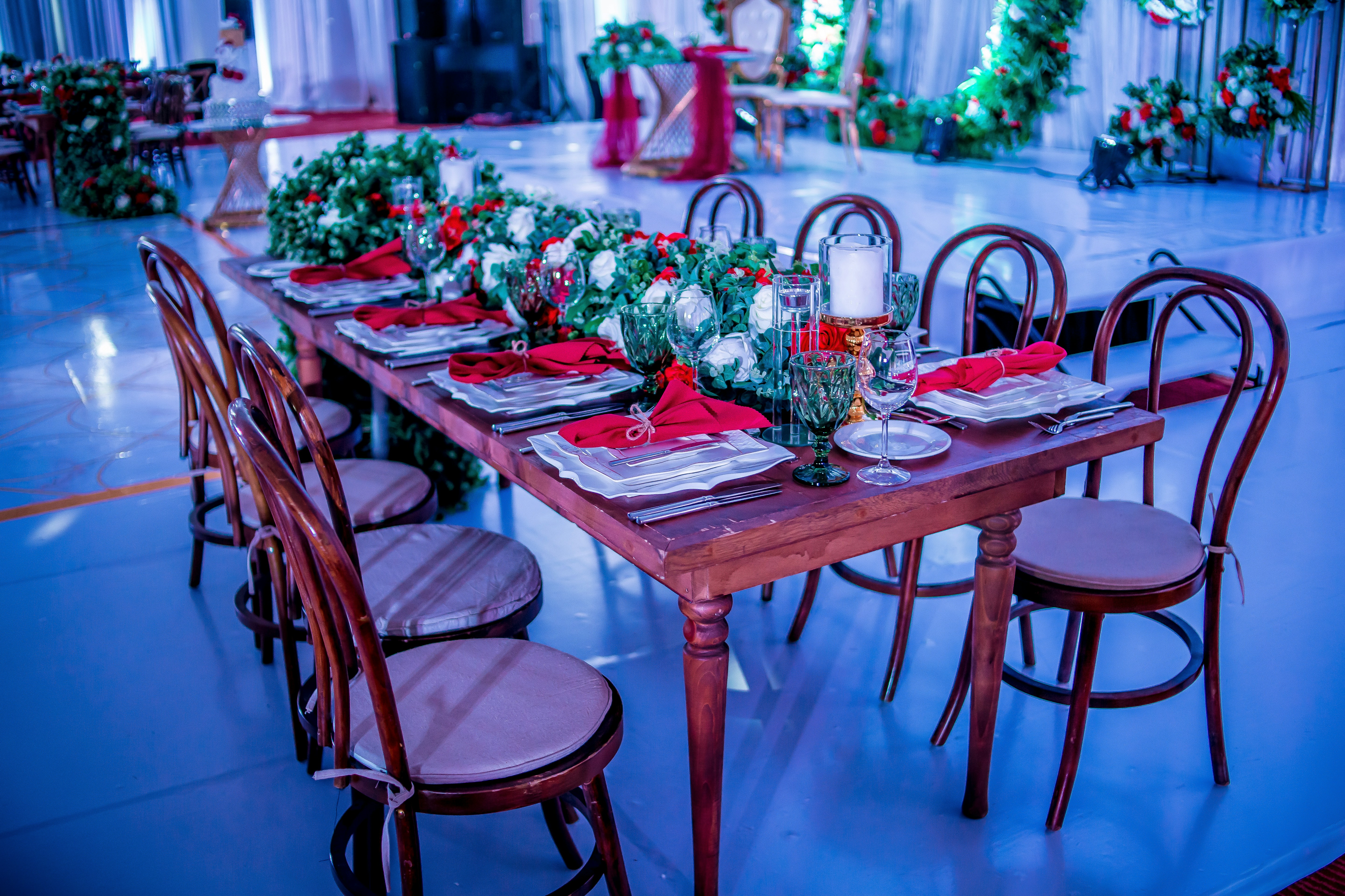 Empty Dining Table Set With Plate Set And Flower Photo Free