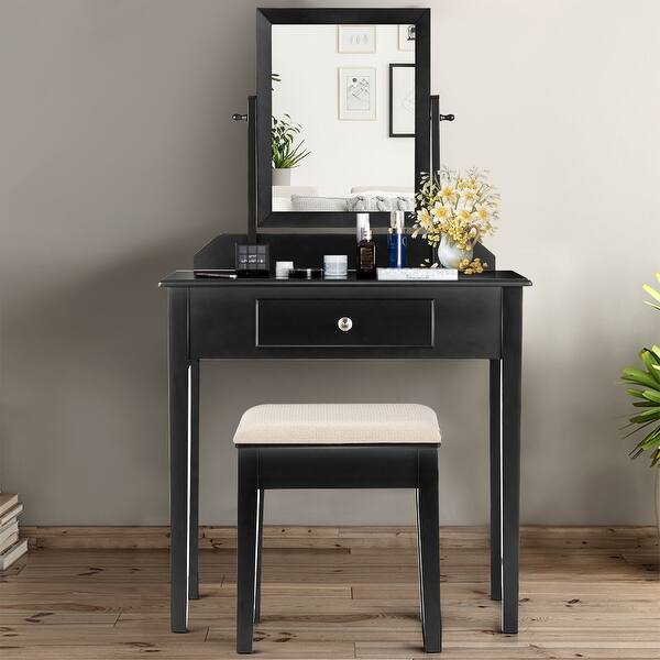 Costway Vanity Makeup Dressing Table Set W Mirror 3 Drawers