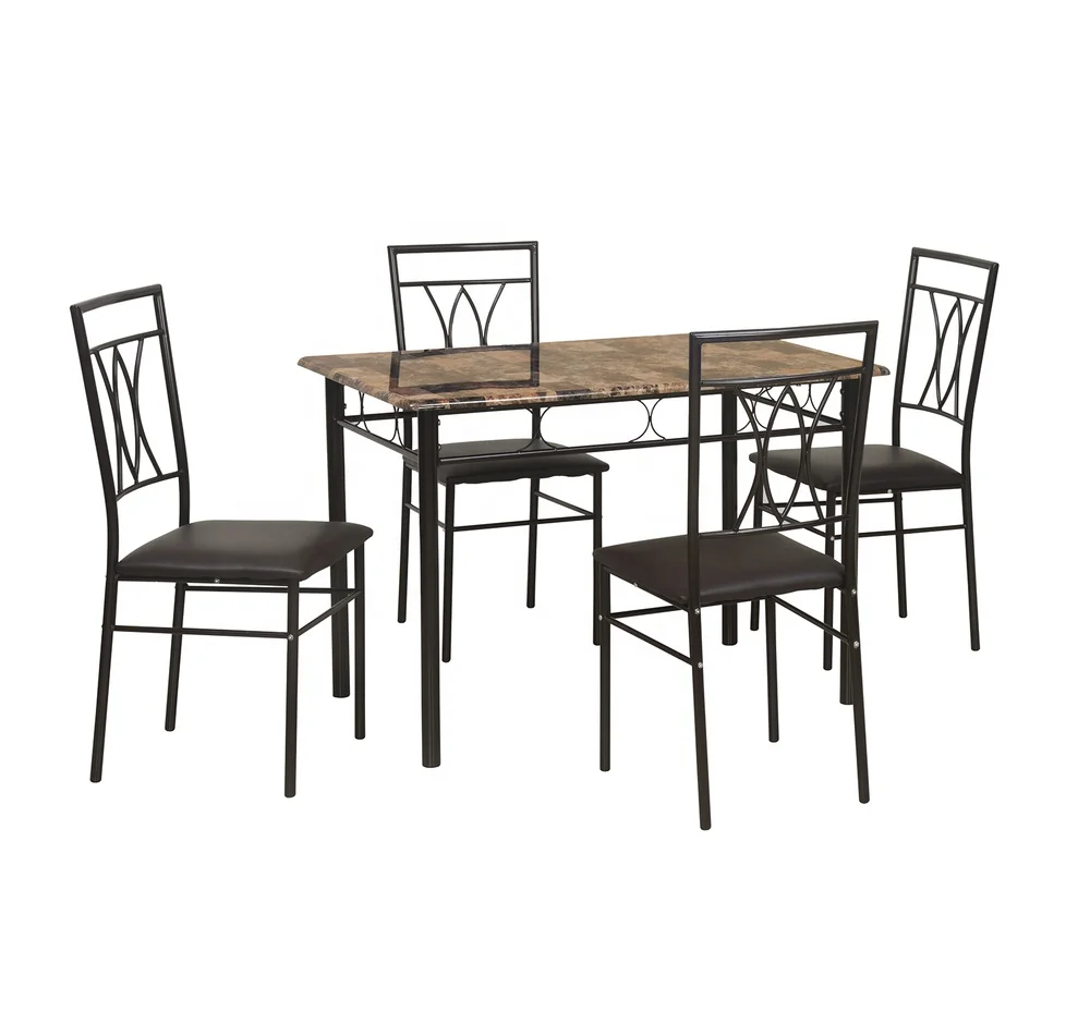 Modern 5 Piece Faux Marble Dining Table 4 Chairs In Brown Steel