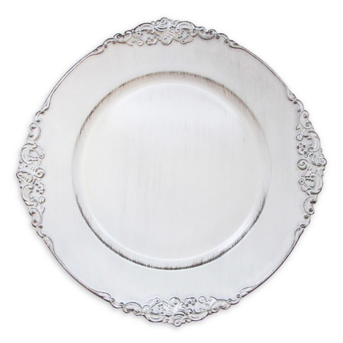 American Atelier Royal Antiqued Charger Plates In White Set Of 4