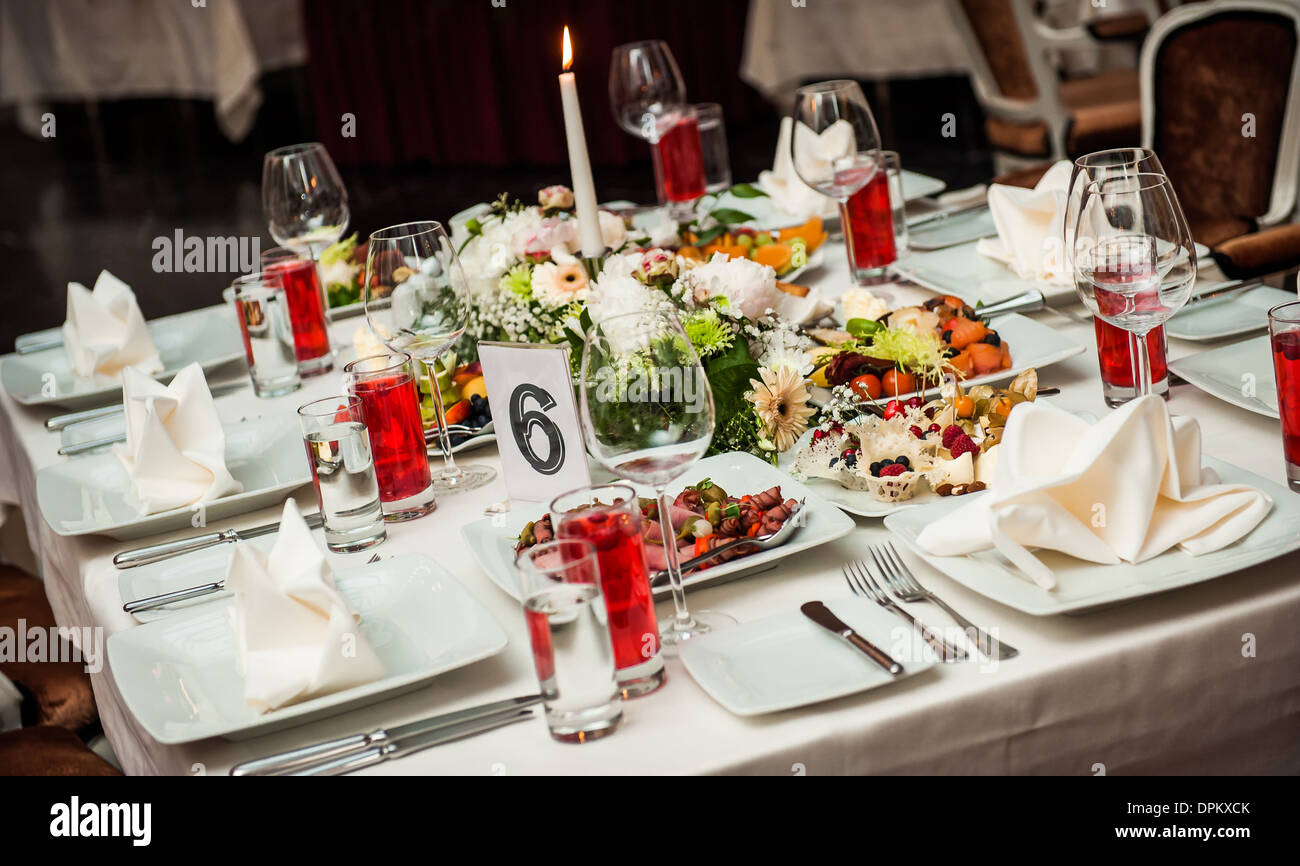 Luxury Banquet Table Setting In Restaurant Close Up Stock Photos