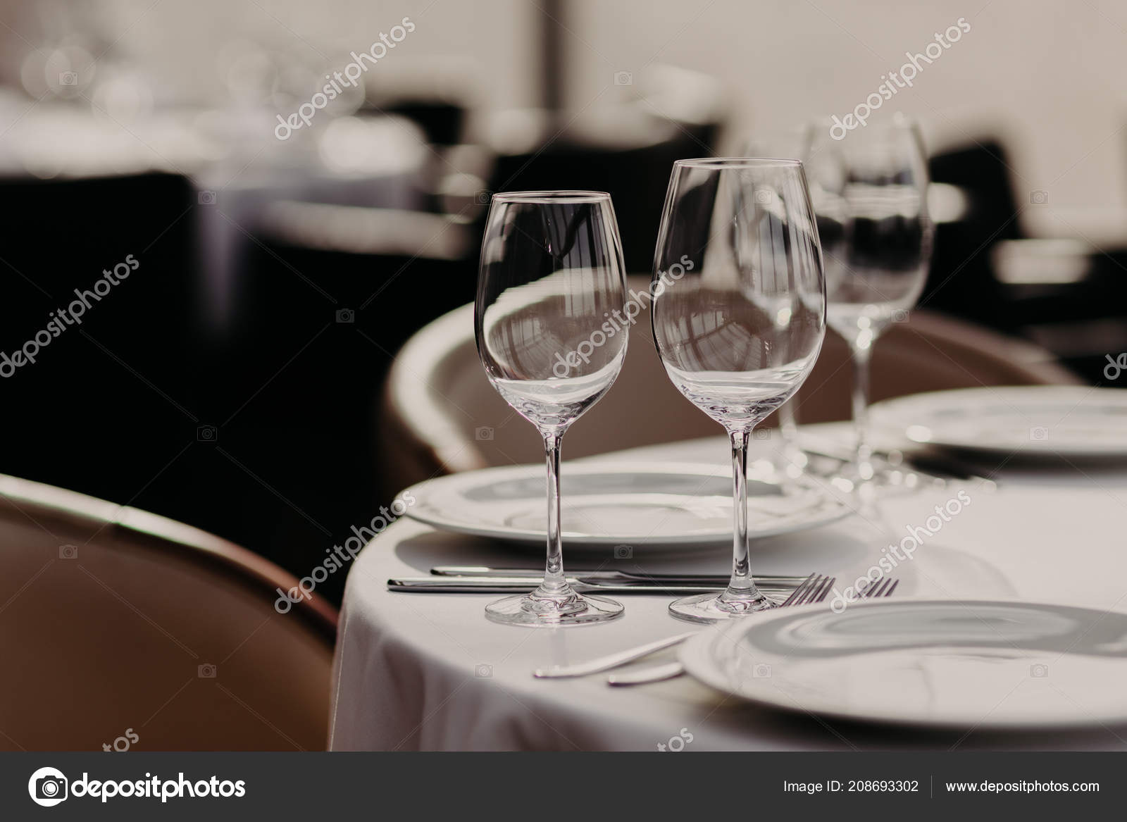 Banquet Table Setting Glass On Evening Reception Stock Photo