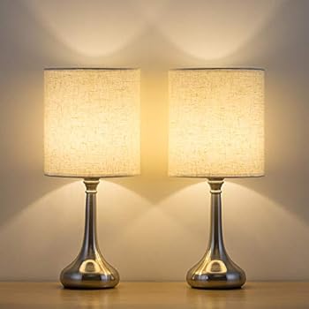 Modern Table Lamp Set Of 2 Desk Lamp With Fabric Linen Shade