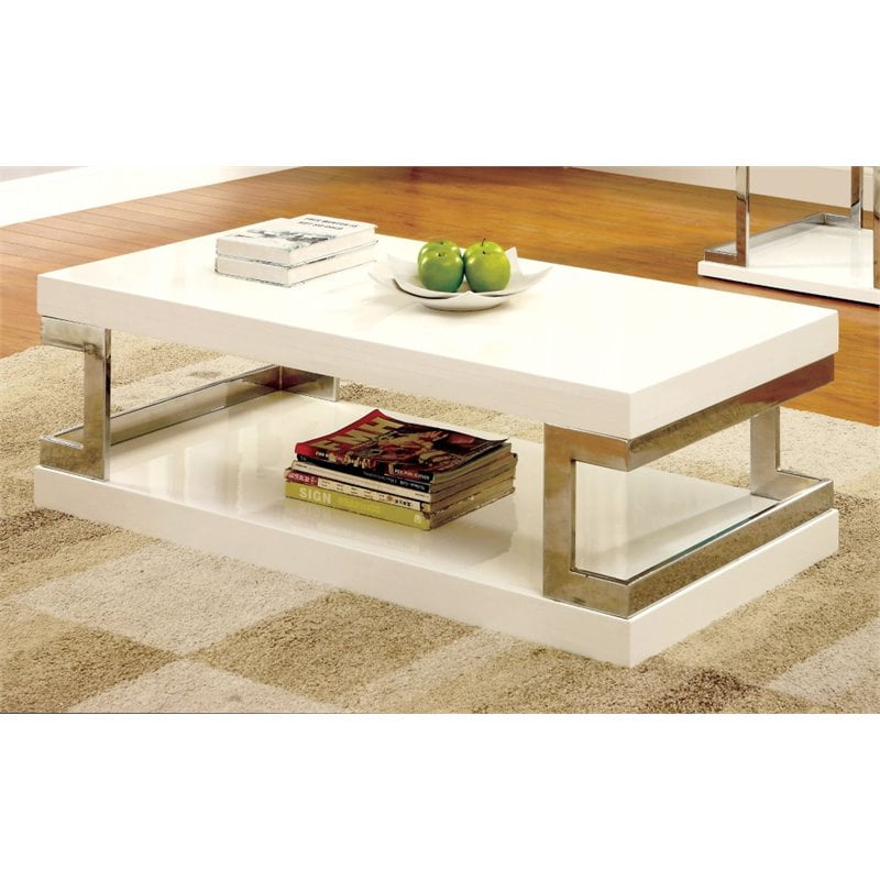 Meda Contemporary White Chrome Coffee Table