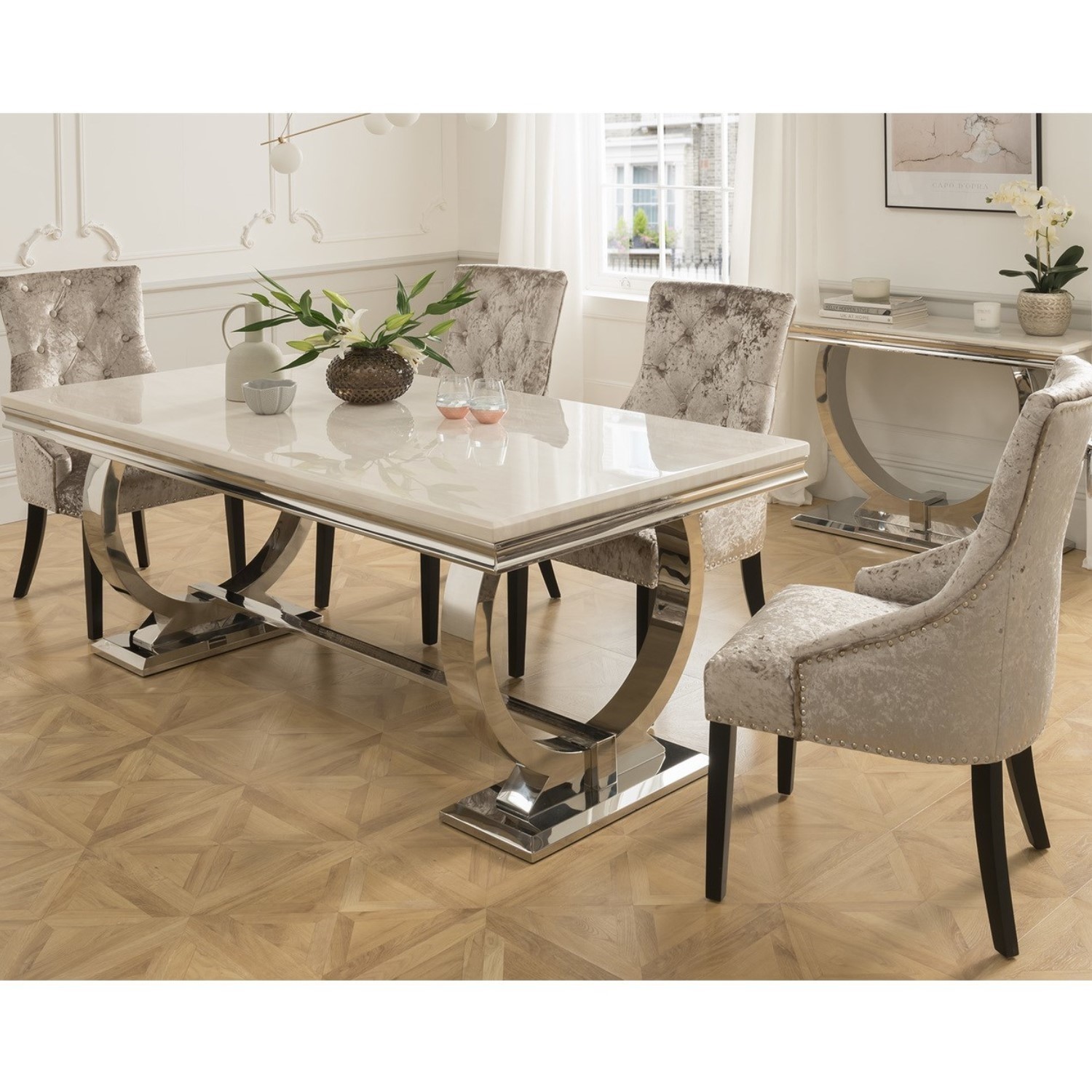 Vida Living Arianna Cream Marble Dining Table With 4 Crushed